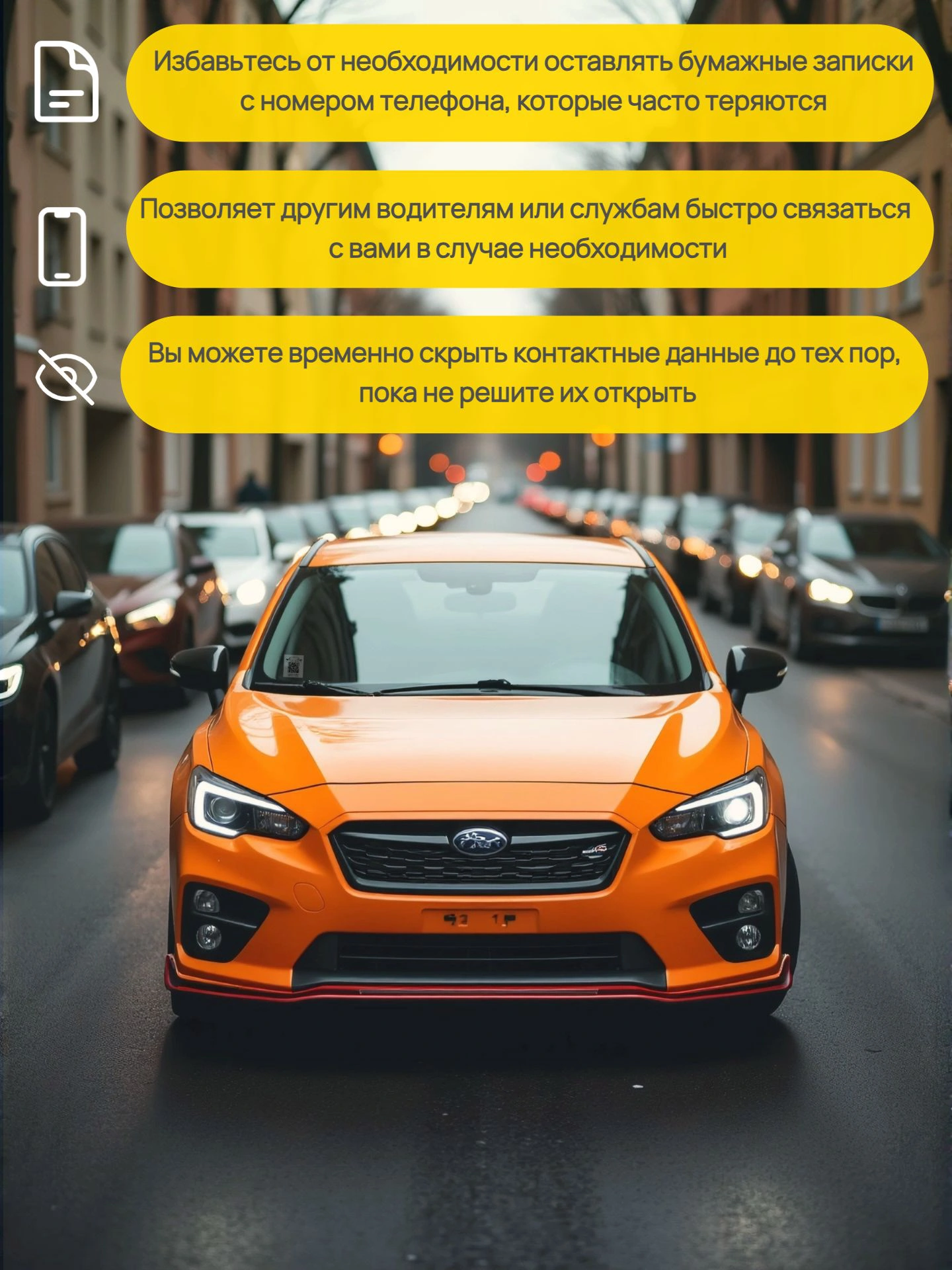 Автомобильная QR-наклейка — удобный способ для быстрого обмена контактами на дороге. Она крепится на лобовое стекло и позволяет другим водителям связаться с вами в случае необходимости, просто отсканировав QR-код и набрав указанный номер телефона.