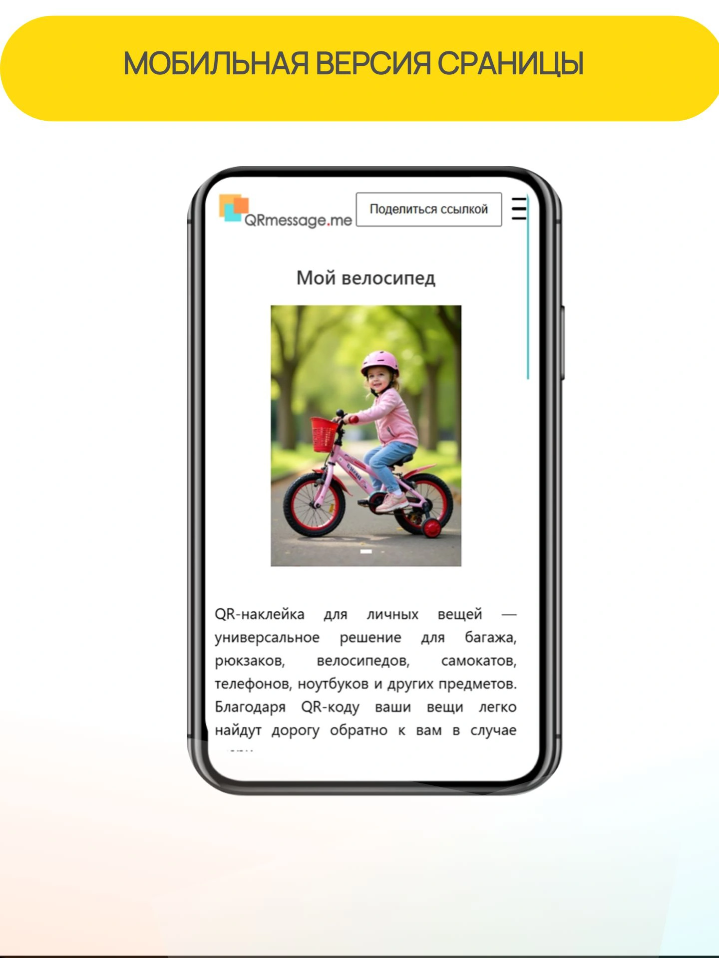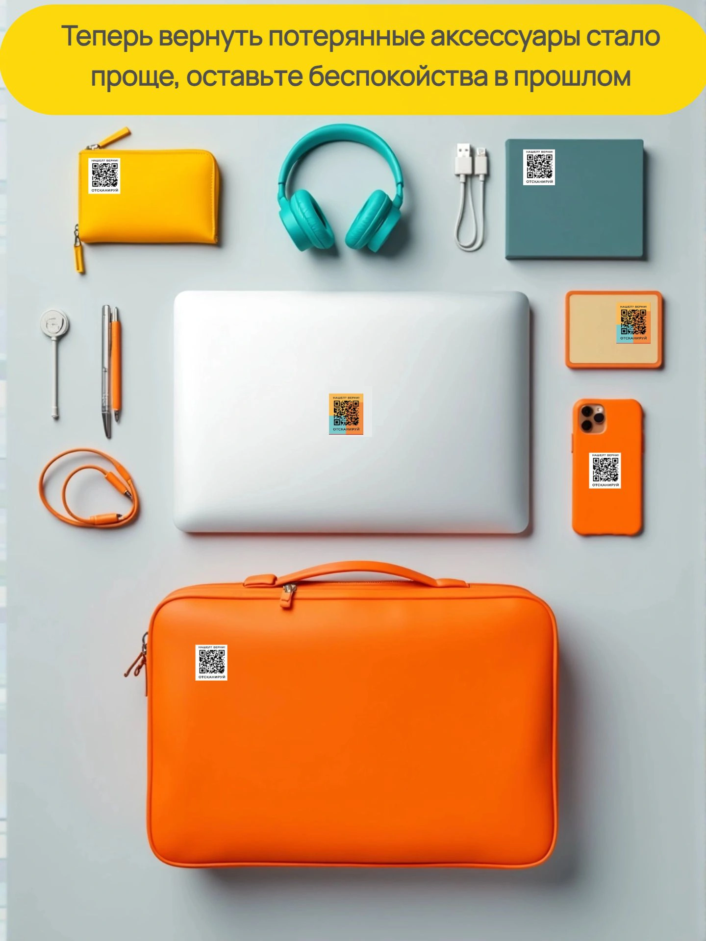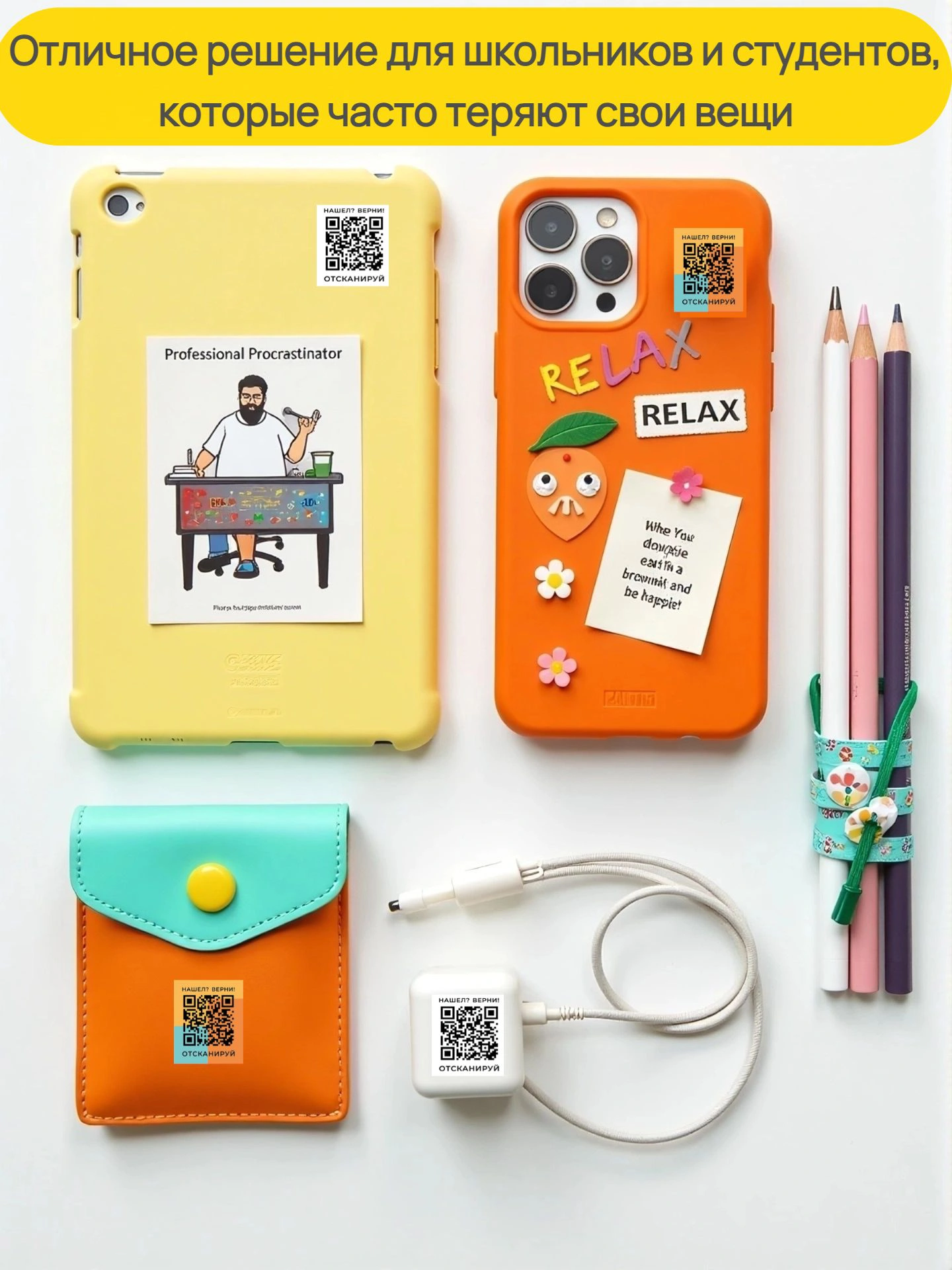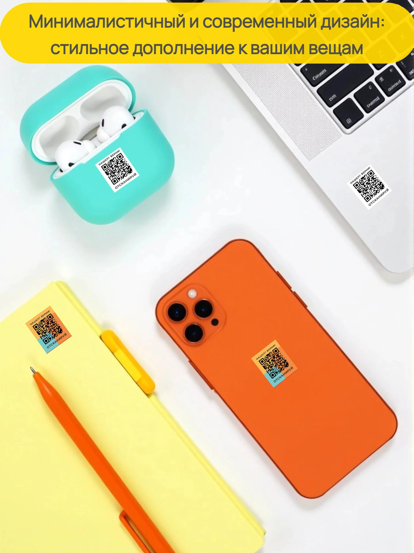 QR-наклейка для личных вещей — универсальное решение для багажа, рюкзаков, велосипедов, самокатов, телефонов, ноутбуков и других предметов. Благодаря QR-коду ваши вещи легко найдут дорогу обратно к вам в случае утери.