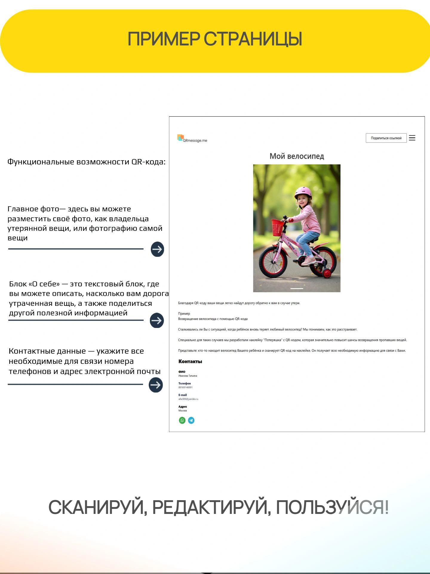 Функционал QR-кода для наклейки «Потеряшка» включает в себя несколько блоков: